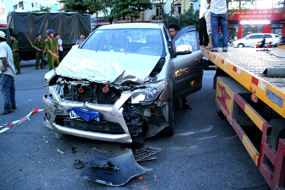 Phần trước ô tô bị hư hỏng nặng. Ảnh: N.TRI