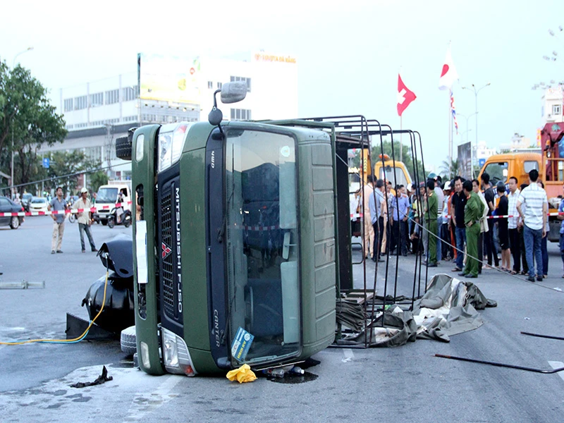 Vào khoảng 16 giờ ngày 3-5, tại bùng binh đường Nguyễn Hữu Thọ - Duy Tân - Lê Đình Lý (phường Hòa Thuận Tây, quận Hải Châu, Đà Nẵng) đã xảy ra một vụ tai nạn giao thông khiến một xe tải bị lật nhào.