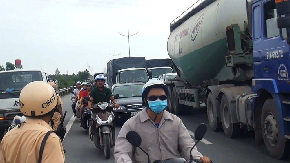 Ảnh hưởng từ sự cố tai nạn này đã khiến giao thông trên đường Võ Trần Chí dẫn vào cao tốc ùn ứ kéo dài, hàng trăm phương tiện di chuyển khó khăn.