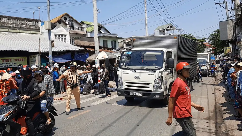 Trưa 19-2, người phụ nữ khoảng 32 tuổi chạy xe máy 72H1-097.25 trên đường Hà Huy Giáp theo hướng từ cầu Phú Long về ngã tư Ga (quận 12).