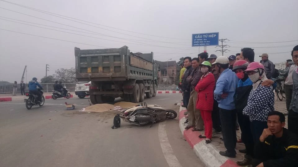 Khi tới đoạn cầu Tứ Hiệp thì bất ngờ va chạm với một chiếc xe tải chạy hướng cùng chiều. Cú va chạm khiến hai người đi xe máy ngã xuống đường, bị bánh xe tải cán vào, khiến cả hai nạn nhân tử vong tại chỗ.