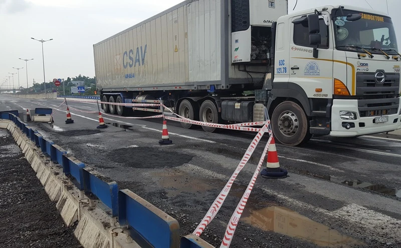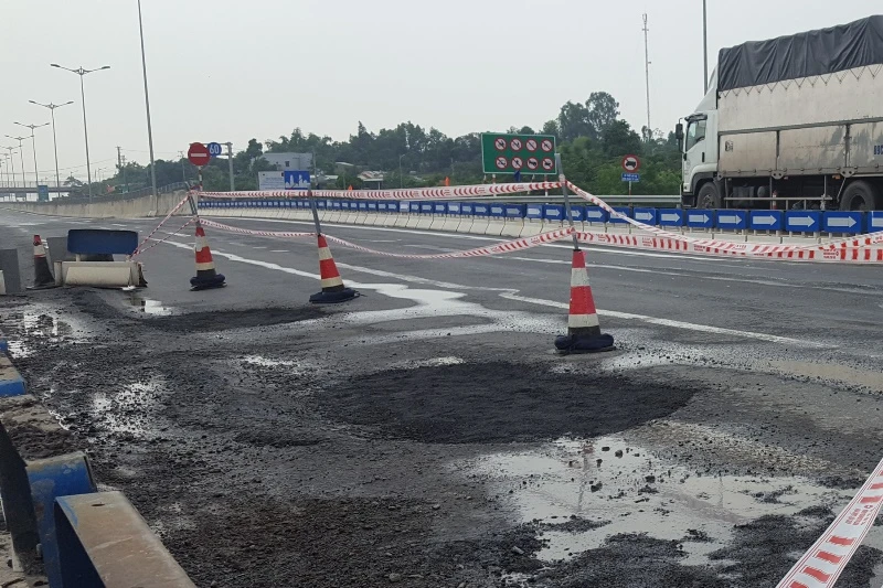 Ngay khi xuất hiện ổ gà, BQL dự án đã phối hợp với đơn vị khai thác vận hành lắp dựng hàng rào chắn, thiết bị tứ nón, biển báo để cảnh báo các phương tiện lưu thông. Sau đó, việc sửa chữa được tiến hành như trên.