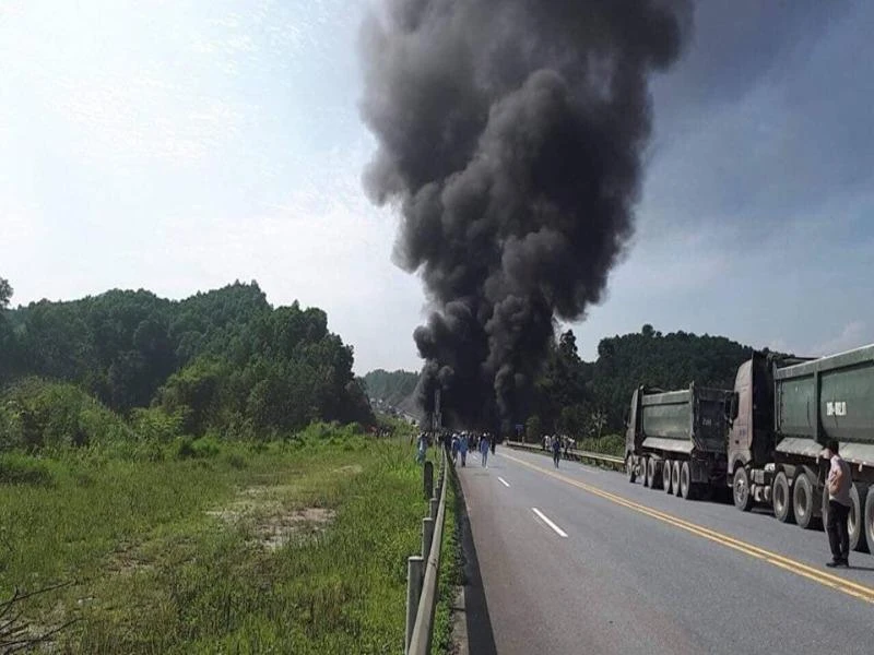 Hiện trường vụ xe tải nổ trên cao tốc.