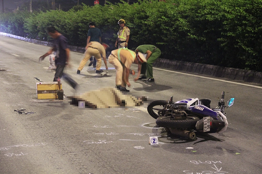 Lực lượng chức năng nhanh chóng có mặt khám nghiệm, phân luồng giao thông xử lý vụ việc.