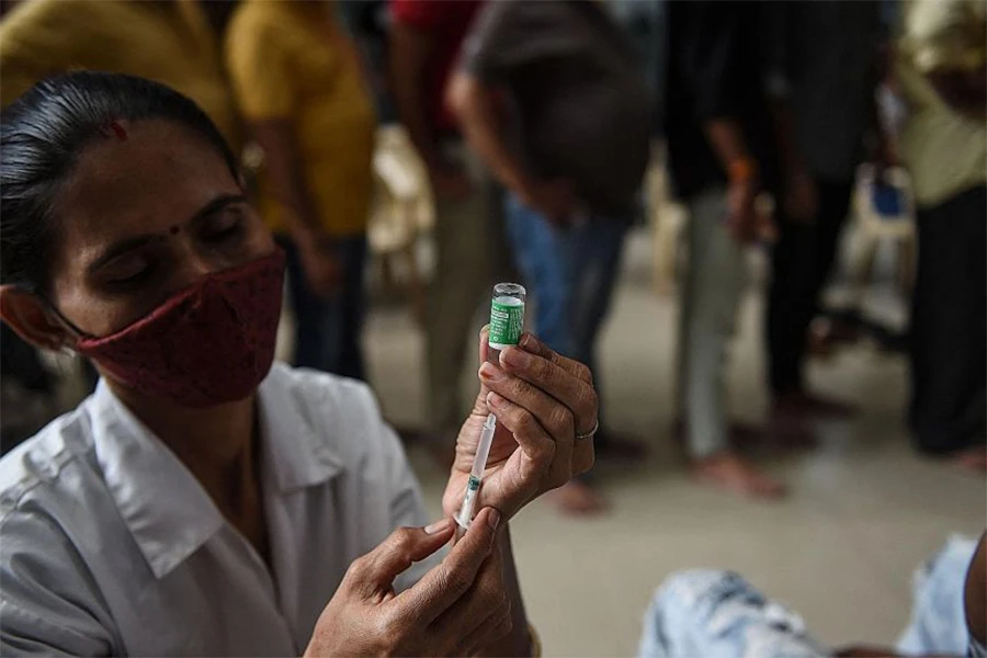 Nhân viên y tế chuẩn bị tiêm vaccine COVID-19 cho người dân tại một điểm chủng ngừa ở bang Ahmedabad (Ấn Độ) ngày 31-7. Ảnh: AFP