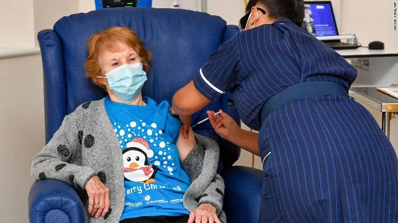 Một người phụ nữ ở Anh nhận được vaccine ngừa COVID-19. Ảnh: CNN