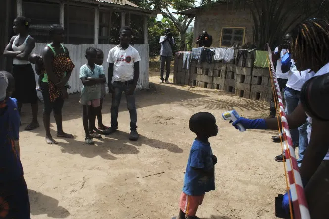 Nhân viên y tế kiểm tra nhiệt độ một cậu bé tiếp xúc với bệnh nhân Ebola ở Monrovia, Liberia Ảnh: Reuters