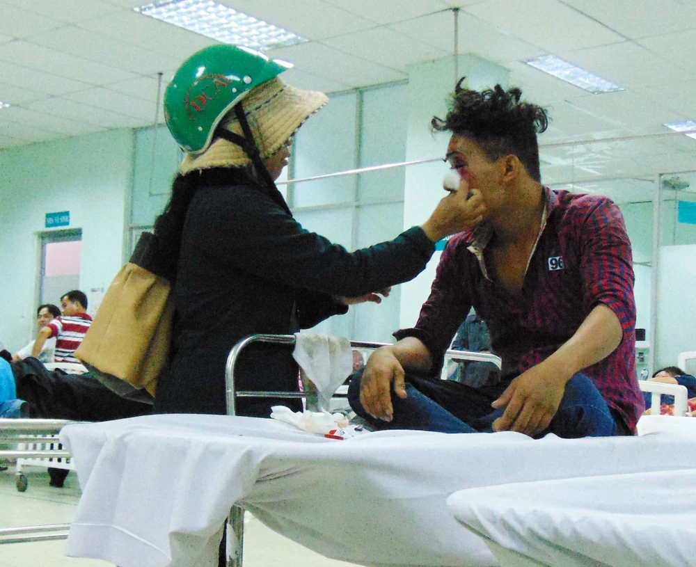 Nghe anh thanh niên nói xong, bác sĩ (BS) Võ Tấn Hưởng (trực ca cấp cứu) giải thích do là khoa Cấp cứu nên chỉ có thể xử lý vết thương ban đầu bằng cách khâu lại để không chảy máu. Còn muốn vết thương không ảnh hưởng đến khuôn mặt về sau thì đến thẩm mỹ viện.