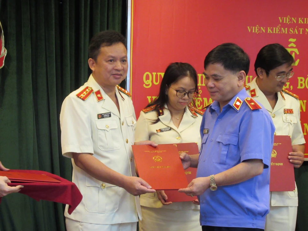 Cạnh đó, lãnh đạo VKSND TP.HCM cũng trao quyết định bổ nhiệm ông Phạm Đức Bảo (Phó viện trưởng VKSND quận 2) giữ chức vụ Phó trưởng phòng thực hành quyền công tố, kiểm sát điều tra, xét xử sơ thẩm án hình sự về trật tự xã hội (phòng 2), ông Nguyễn Thanh Minh (Phó viện trưởng VKSND quận 9) giữ chức phó trưởng phòng kiểm sát thi hành án dân sự (phòng 15).