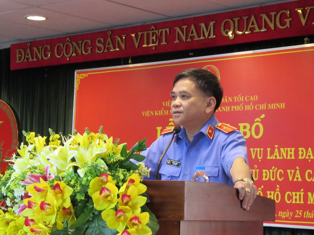 Ông Đỗ Mạnh Bổng (Viện trưởng VKSND TP.HCM) phát biểu tại buổi lễ. Ảnh: YC