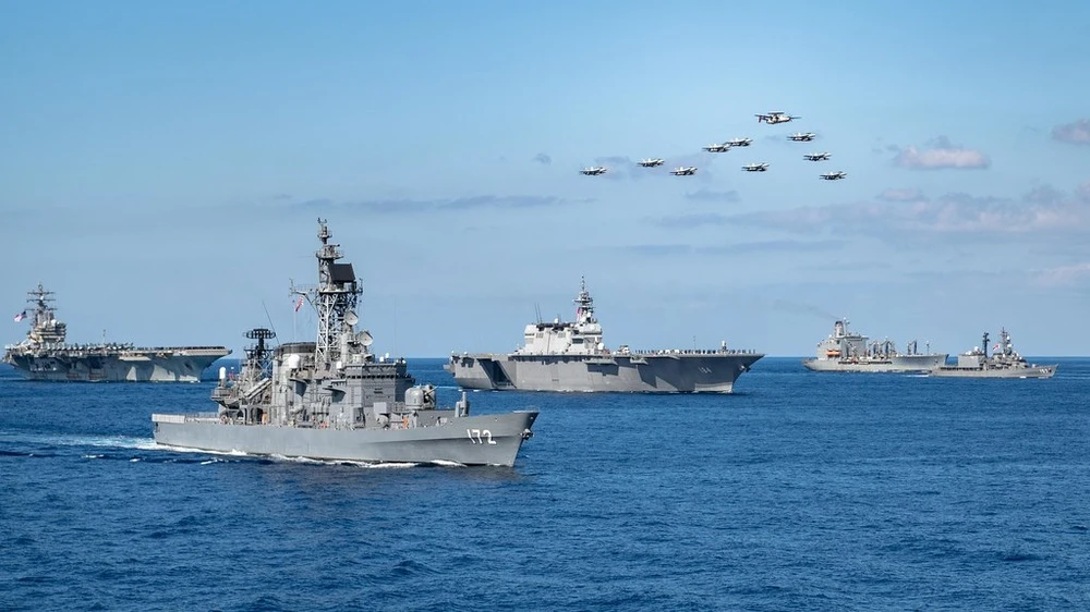 Các tàu chiến của Mỹ và Nhật trong cuộc tập trận chung hồi tháng 10-2020. Ảnh: US NAVY