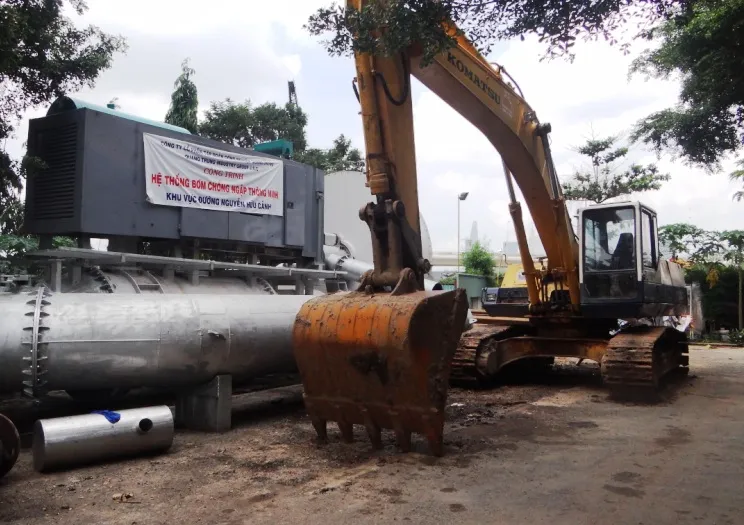 Hiện việc thi công lắp đặt máy bơm công suất lớn (96.000m3/giờ) để chống cho đường Nguyễn Hữu Cảnh vẫn chưa hoàn tất. Thay vì bắt đầu vận hành từ ngày 10-8, Tập đoàn Quang Trung xin lùi thời gian lại vào cuối tháng.