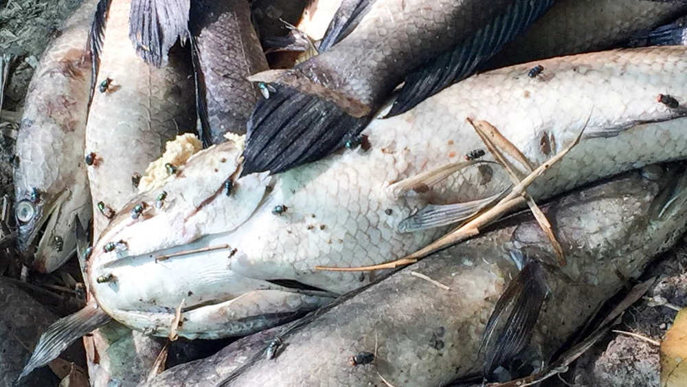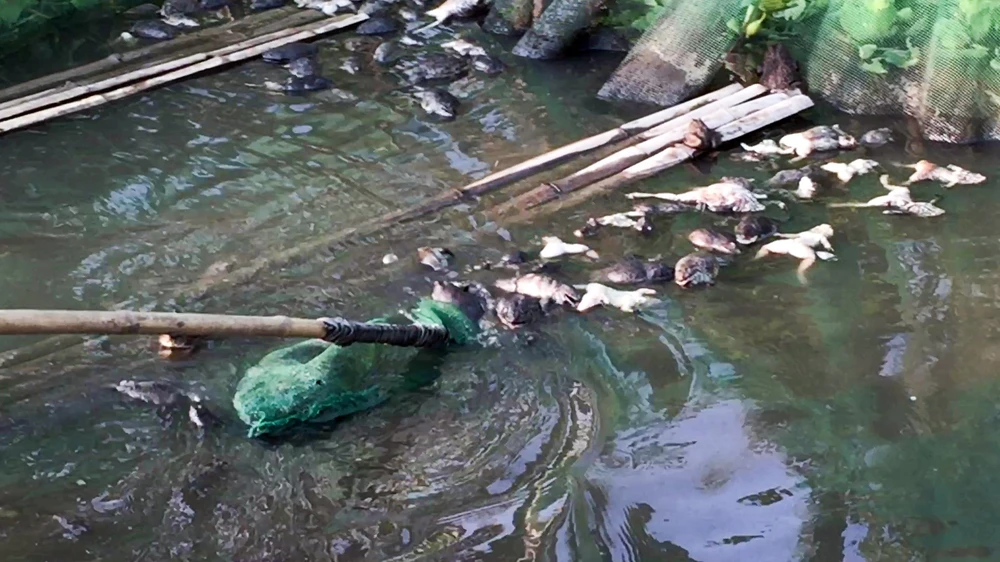 Ô nhiễm nguồn nước hồi tháng 4-2019 làm thủy sản của bà con chết hàng loạt. Ảnh: CHÂU ANH