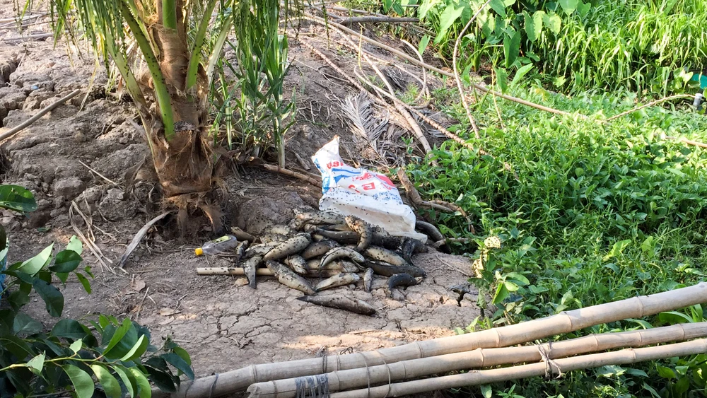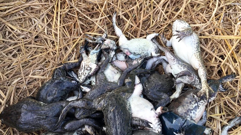 Một hộ dân ngụ phường Thuận An, thị xã Long Mỹ cho biết khoảng ngày 20-4, ba vèo ếch với khoảng 8.000 con chuẩn bị xuất bán của gia đình đột nhiên chết hàng loạt. Qua tìm hiểu, nhiều hộ dân sống ở đây cũng bị tình trạng tương tự do nước sông bị ô nhiễm bất thường.