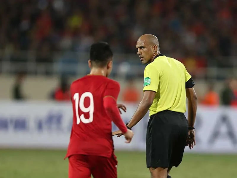 Trọng tài Ahmed Al-Kaf, người Oman với những quyết định thật khó hiểu khiến cả chủ nhà lẫn khách đều ngỡ ngàng. Ảnh: NGỌC DUNG