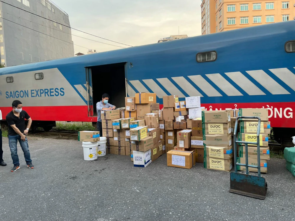 Một chuyến tàu hỗ trợ vận chuyển thiết bị y tế từ Hà Nội vào TP.HCM