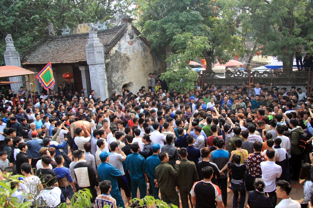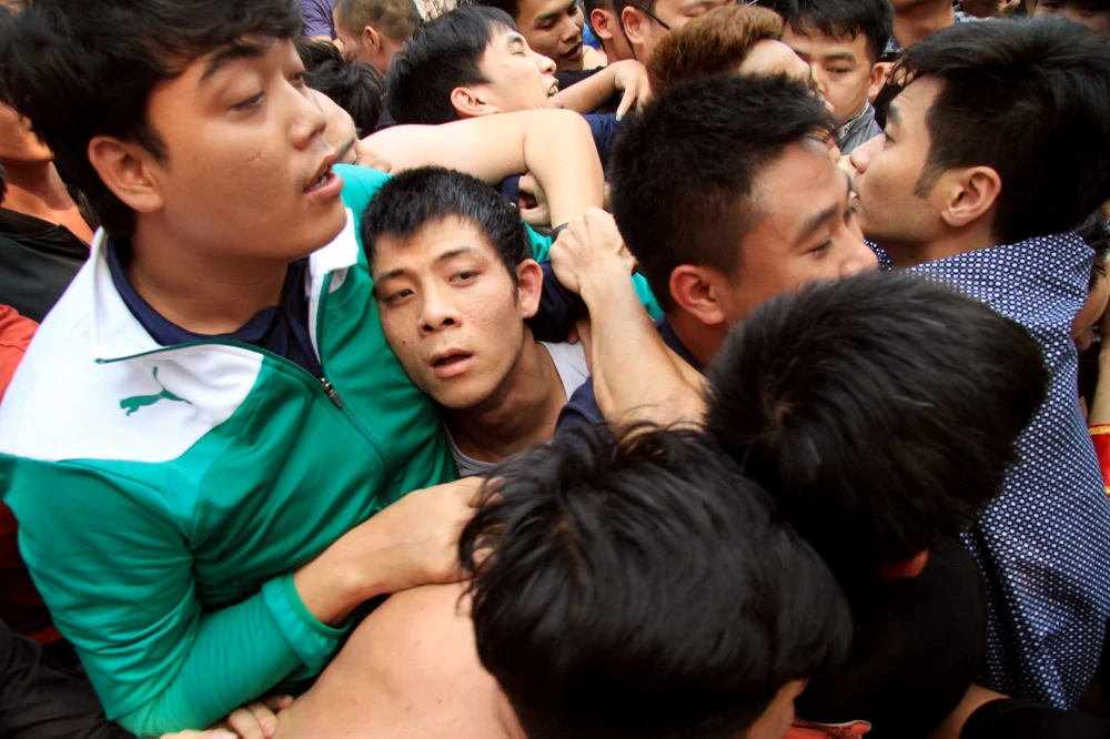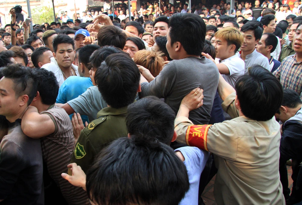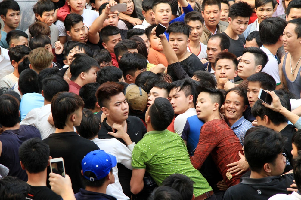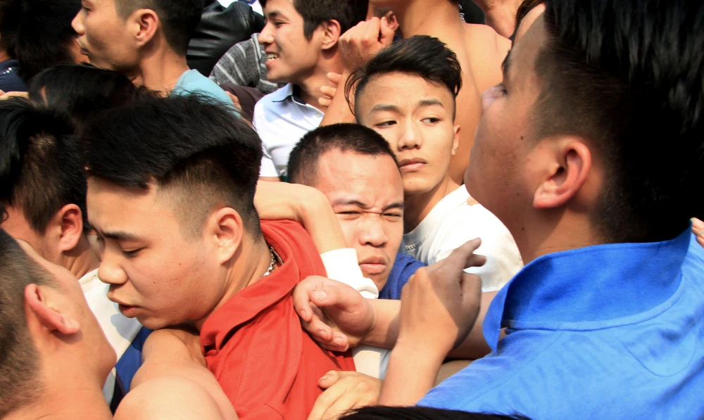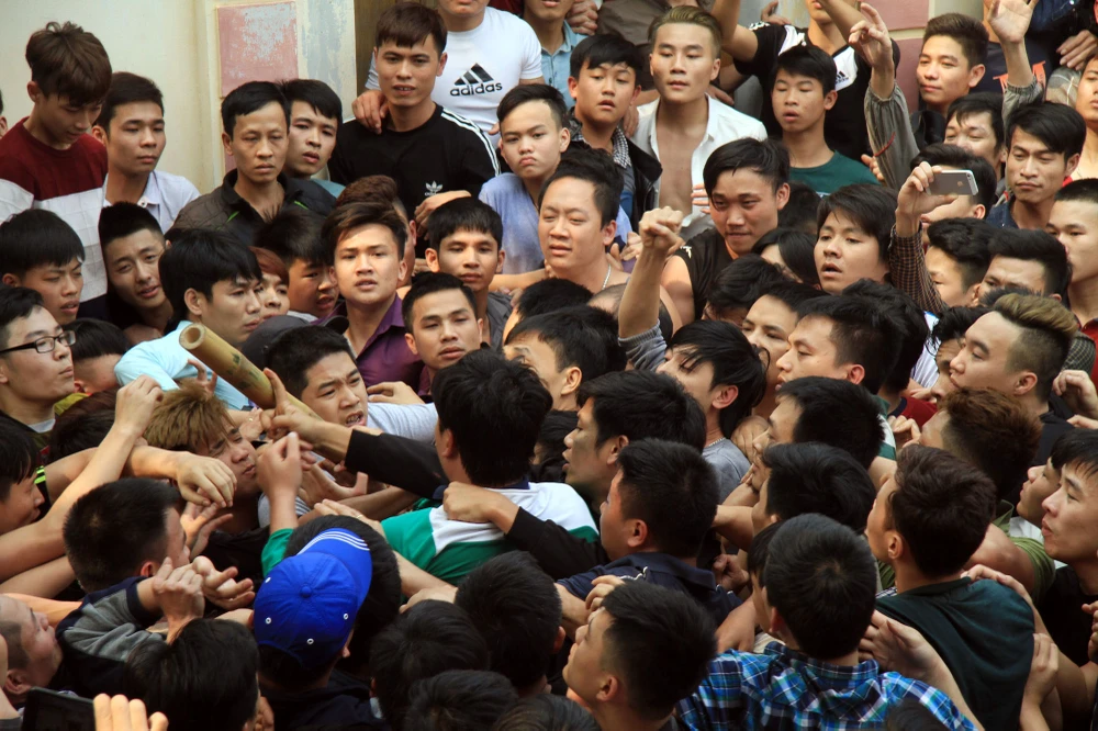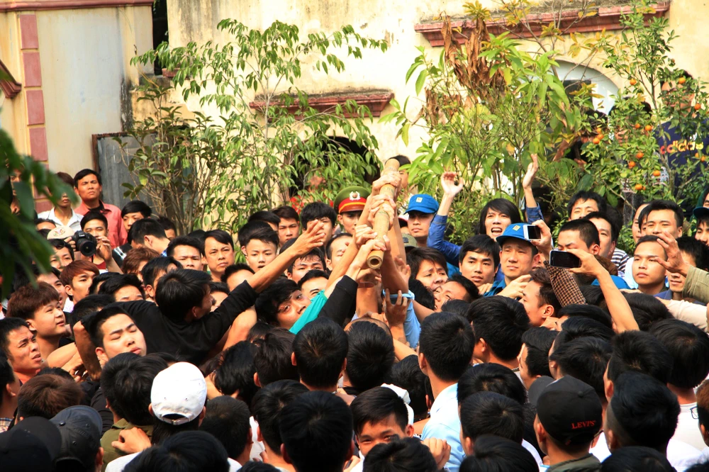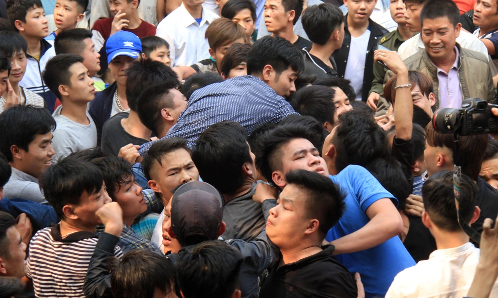 Cảnh chen lấn, hò hét, giằng co náo loạn cả sân đình.