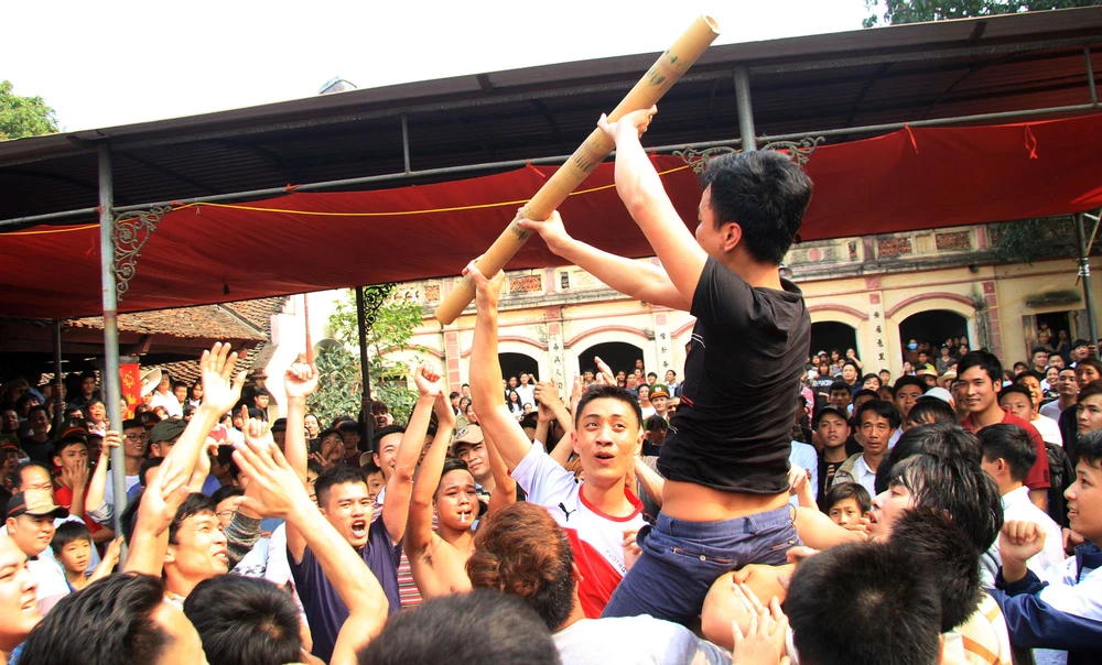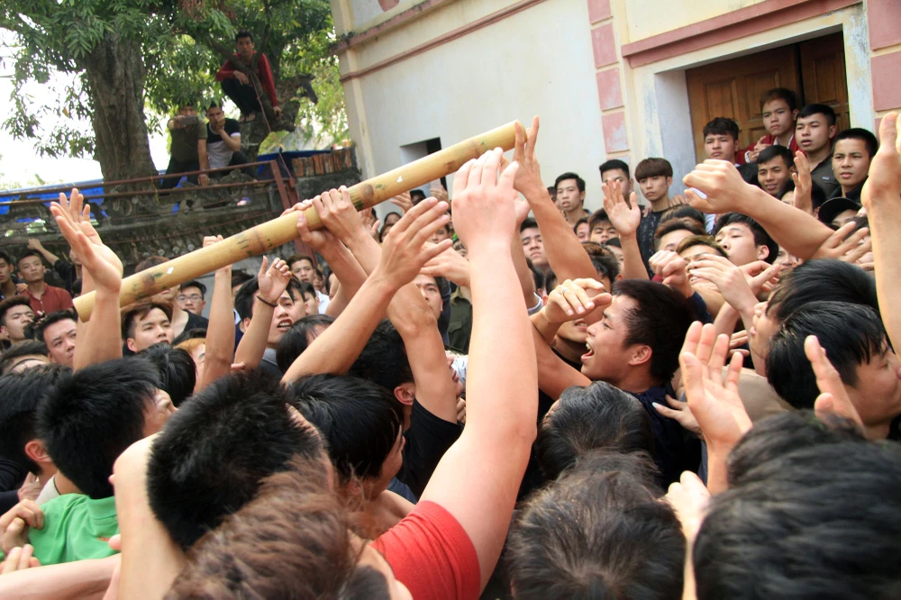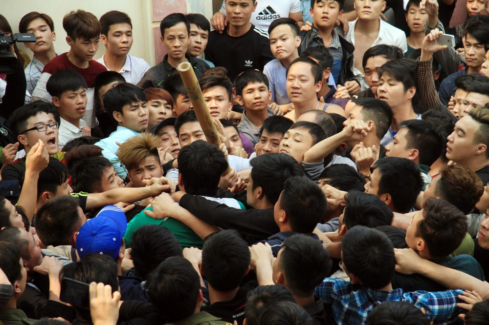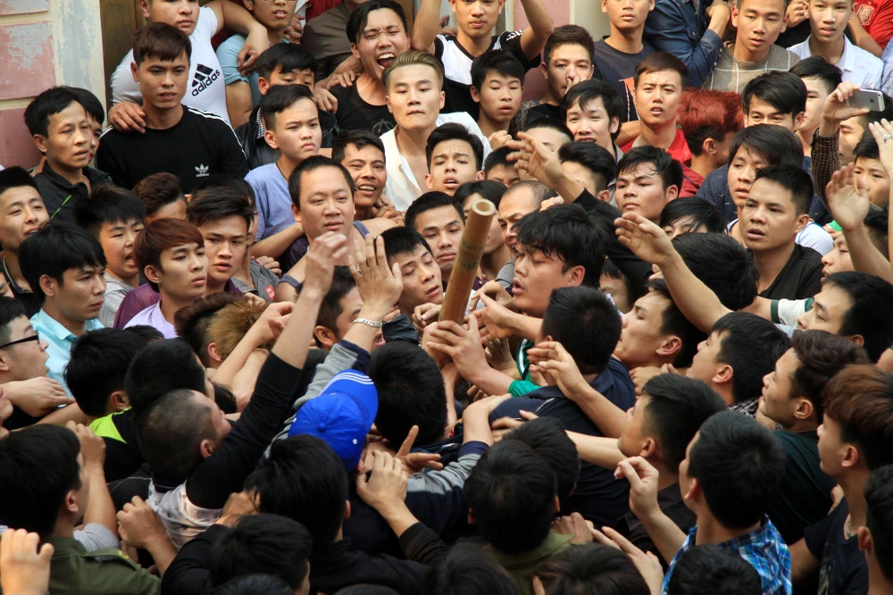 Hàng trăm thanh niên tham gia tranh cướp bông.