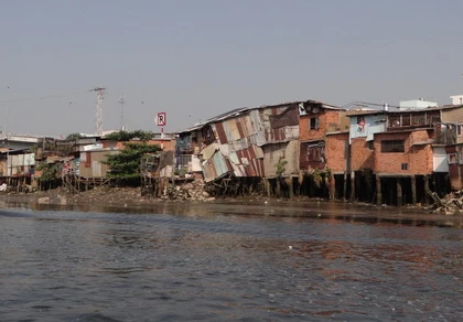 Hàng ngàn căn nhà lụp sụp còn tồn tại trên kênh Đôi - kênh Tẻ. Ảnh: TRUNG THANH