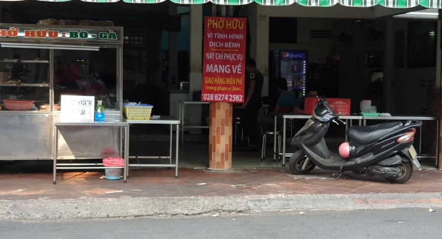 Theo ghi nhận chiều 28-3, nhiều cửa hàng ăn uống, thức ăn đường phố đã có thông báo ngưng phục vụ khách hàng tại chỗ.
