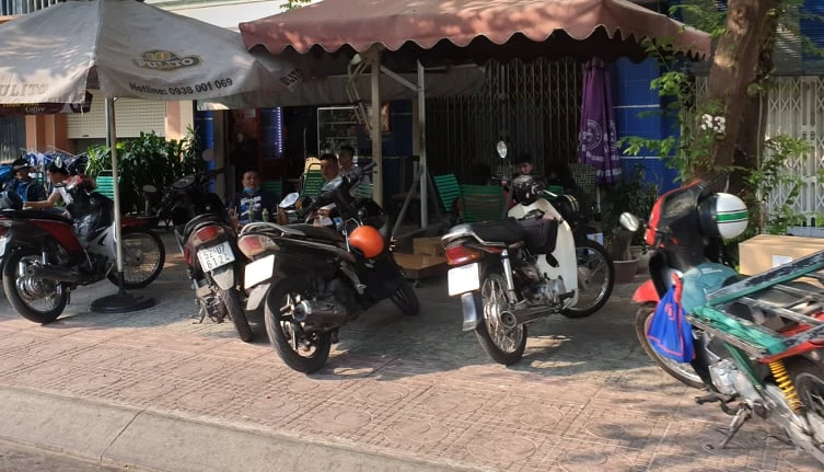 Quán cà phê vẫn còn khách ngồi tại quán. Ảnh: CN