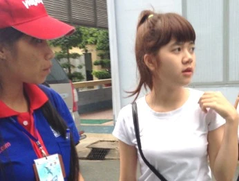Tình nguyện viên Trường Cao đẳng Kinh tế-Kỹ thuật Vinatex TP.HCM hướng dẫn thí sinh đến các phòng thi làm thủ tục dự thi. Ảnh: P.ĐIỀN