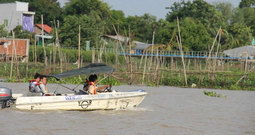 Do mực nước sông Hậu chảy siết, dâng cao nên công tác tìm kiếm người mất tích gặp nhiều khó khăn