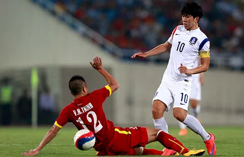 Thật khó đòi hỏi cầu thủ U-23 phải chơi đúng sức với đàn anh chỉ một ngày sau khi vắt sức trước U-23 Hàn Quốc. Ảnh: QUANG THẮNG