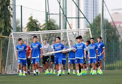 Ảnh 1: Toàn đội đồng lòng và phấn khởi trong những buổi tập dù cường độ rất cao. Ảnh: QUANG THẮNG