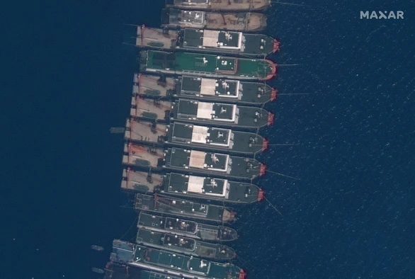Tàu Trung Quốc tại đá Ba Đầu trong ảnh chụp vệ tinh ngày 23-3. Ảnh: AFP