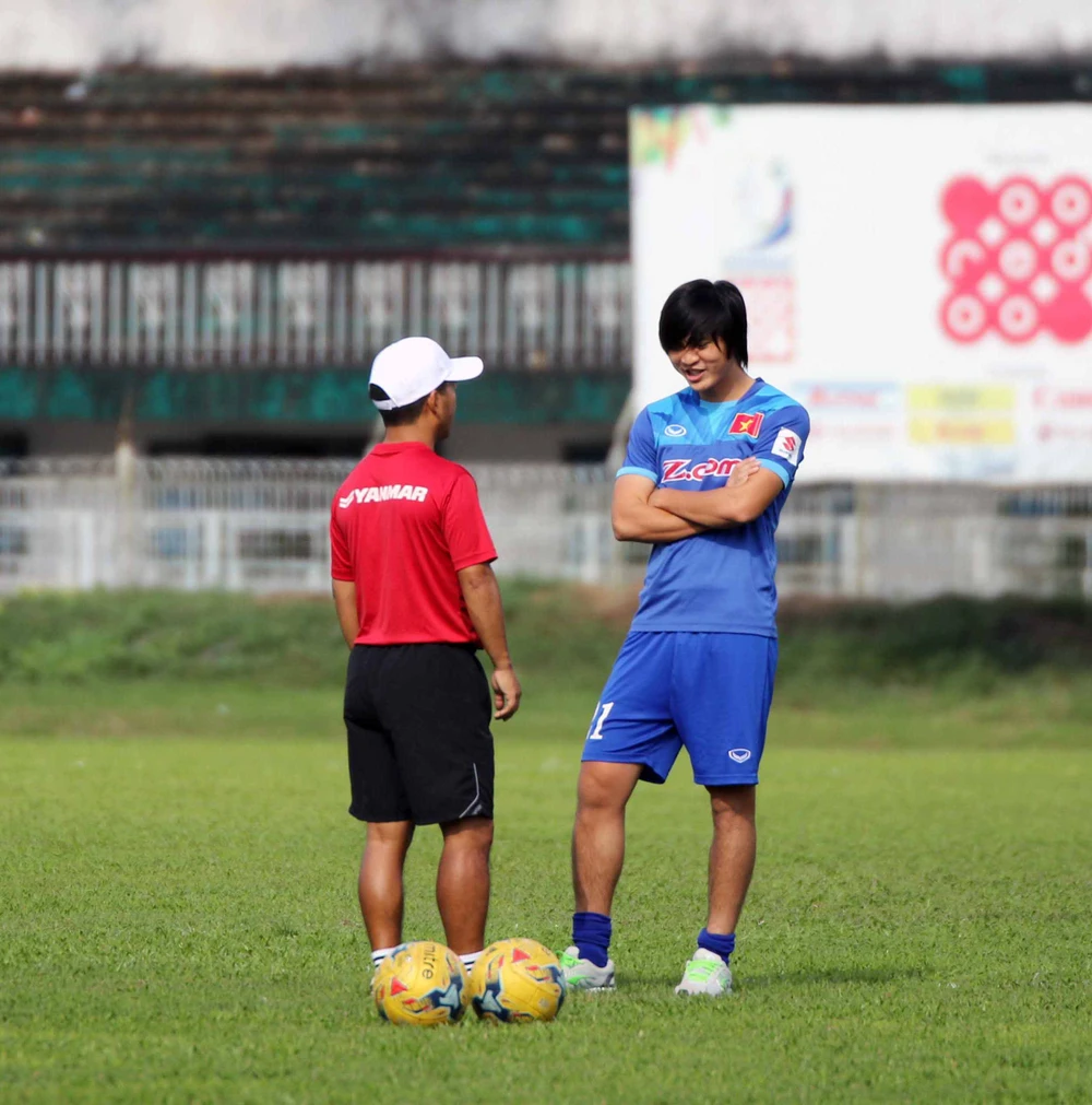 Tuấn Anh chưa thể tập chung giáo án với đồng đội sau bốn ngày ở Myanmar.