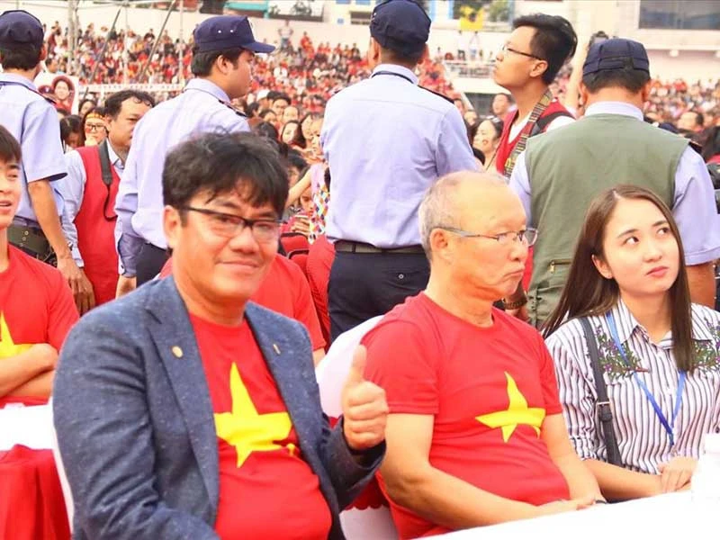 Trưởng đoàn Dương Vũ Lâm sau thành công với HLV Park Hang-seo. Ảnh: CTV