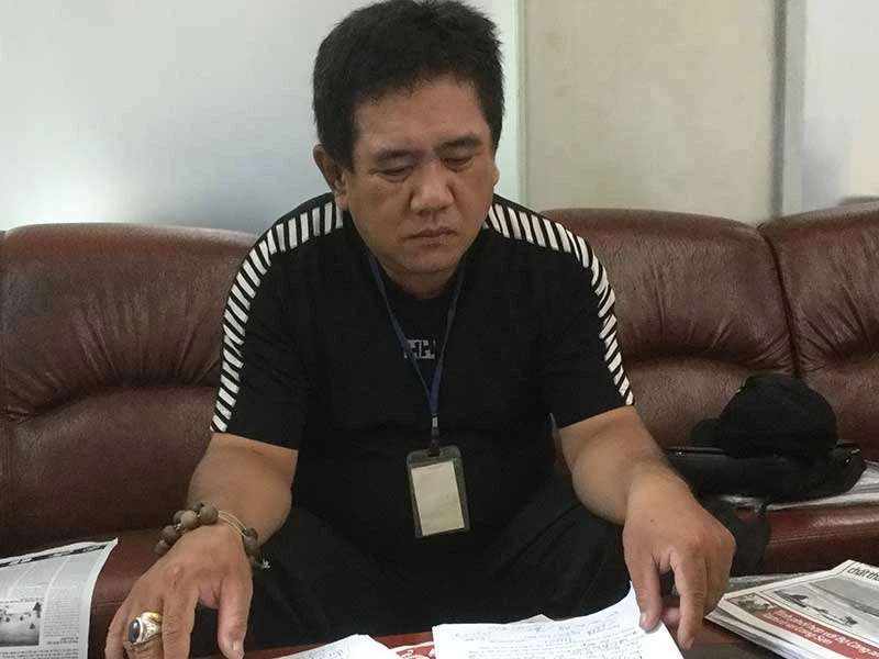 Ông Hiệp bức xúc, khiếu nại việc con trai không được hưởng bảo hiểm như hợp đồng đào tạo đã ghi. Ảnh: NGUYỄN HIỀN