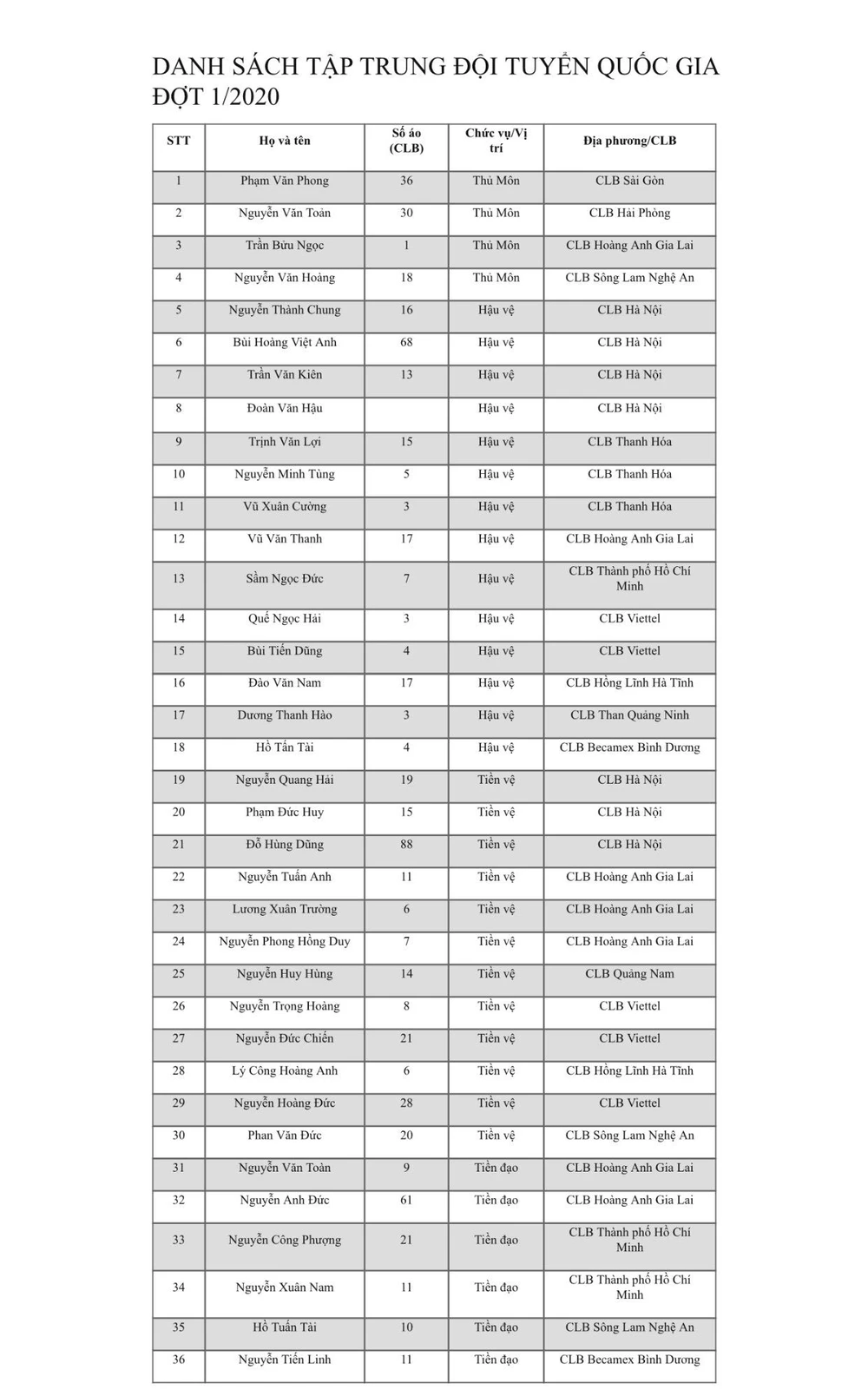 Cá biệt, hậu vệ thuộc biên chế Quảng Nam Nguyễn Huy Hùng tham gia đợt triệu tập này do trước đó, anh đã ở lại Hà Nội kể từ thời điểm V-League tạm dừng. Kết thúc đợt cách ly 14 ngày (tính từ ngày 1-8), cựu hậu vệ CLB SC Heereveen Đoàn Văn Hậu cũng đủ điều kiện tham gia đội tuyển Việt Nam.