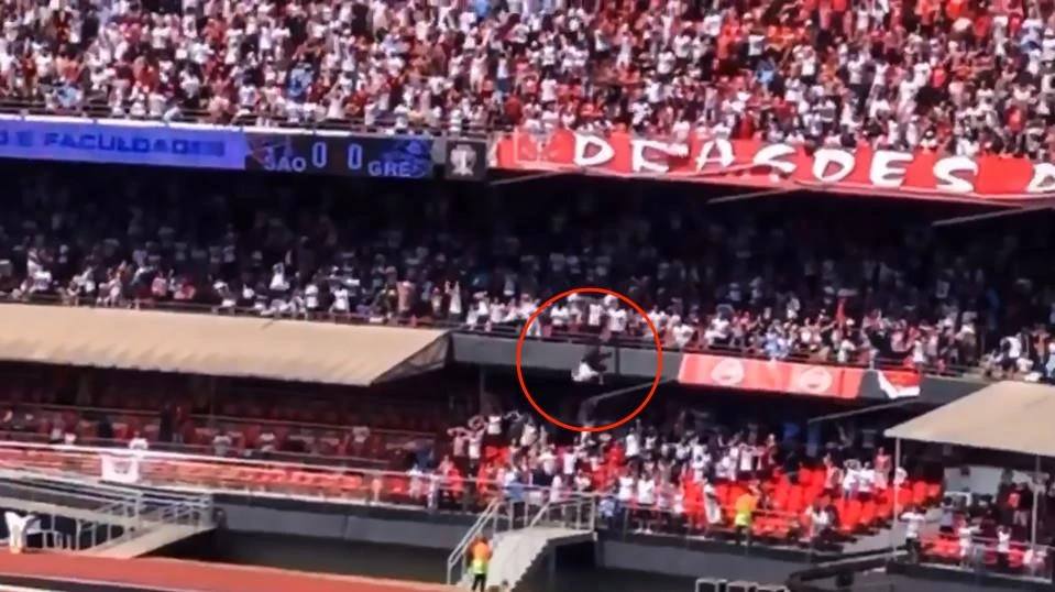 Tại trận đấu giữa hai CLB Sao Paulo và Gremio, một CĐV có tên Lago de Melo Rios, rơi từ tầng cao nhất của SVĐ có sức chứa 66.795 người rớt trúng một CĐV 13 tuổi, có tên Jacanna Santos Araujo đang đứng ở phía dưới.