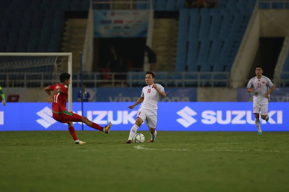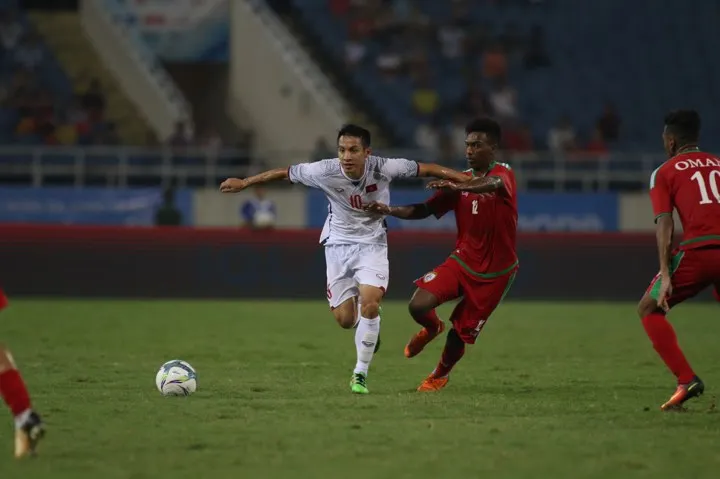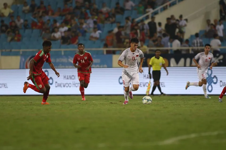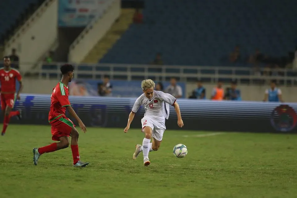 Phút 85, Văn Toàn luồn lách qua hai cầu thủ Oman rồi chuyền ngược lại cho Đức Chinh dứt điểm 1 chạm đưa bóng đi ra ngoài.