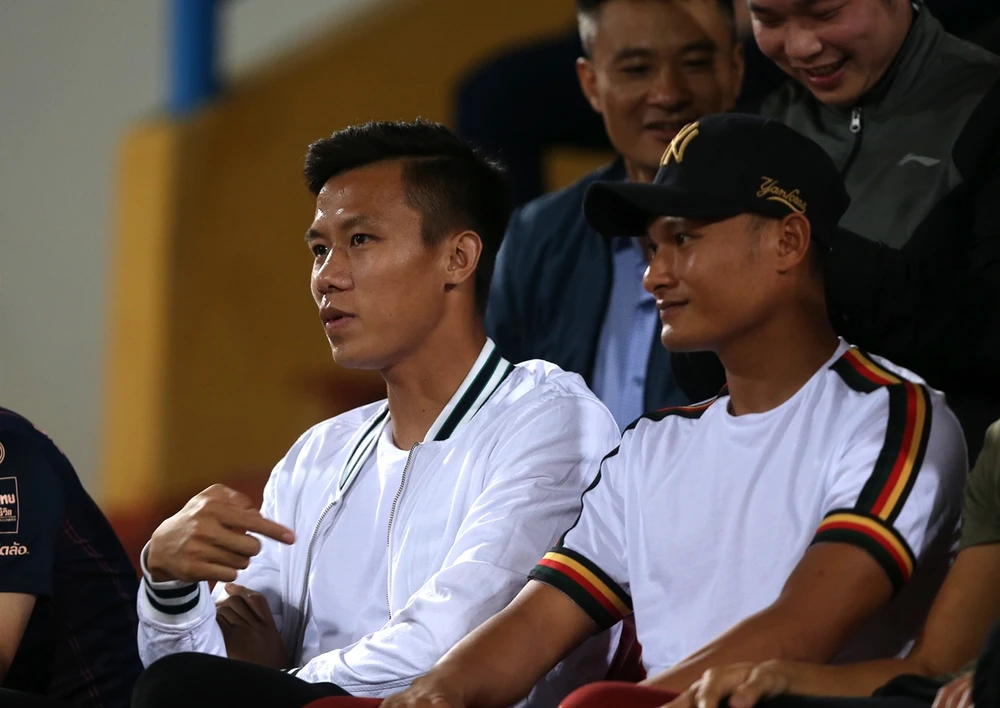 Trọng Hoàng (phải) sẽ làm khán giả ở trận đấu với Indonesia ngày 7-6 do thẻ phạt. Ảnh: NGỌC DUNG.