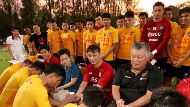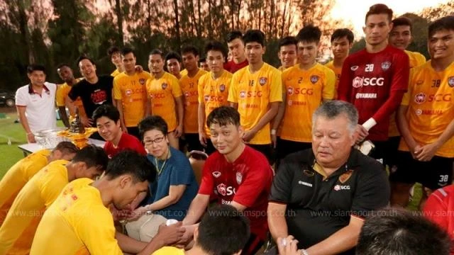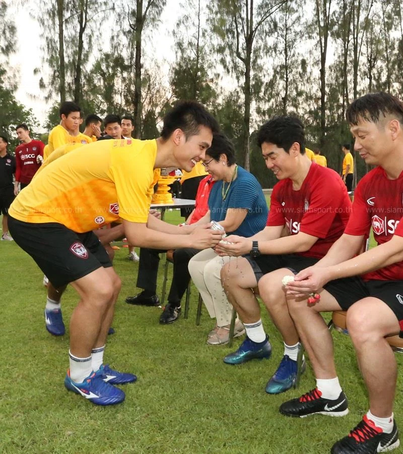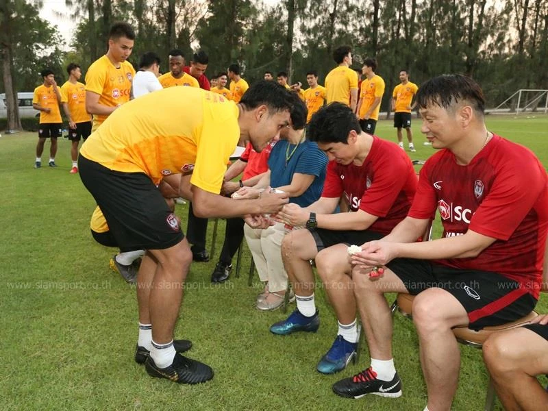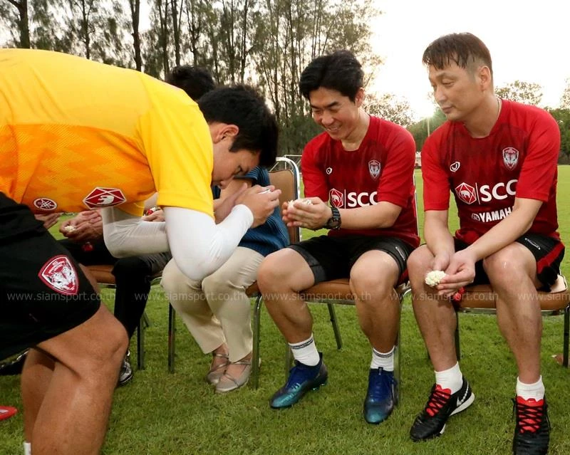 Dù CLB đang có thành tích rất bết bát sau bảy vòng đấu Thai-League, nhưng Muangthong vẫn tiến hành làm lễ “ăn tết” Songkran truyền thống.