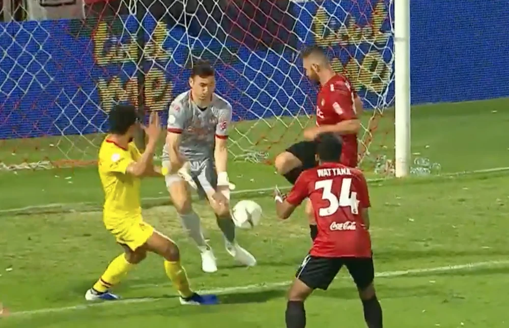 Trong tình huống nguy cấp, lẽ ra hậu vệ Muangthong phải phá bóng dứt khoát nhưng do Văn Lâm lao ra và vồ hụt bóng, cơ hội đã được Rodriguez áp sát và tận dụng ghi bàn san hòa 2-2 cho PTT Rayong. Trước đó, ngoại binh Dennis đã đánh đầu ghi bàn gỡ 1-2 sau tình huống phối hợp đá phạt góc.