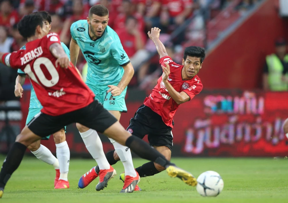 Bangkok Utd (xanh) cũng có nhiều tuyển thủ Thái