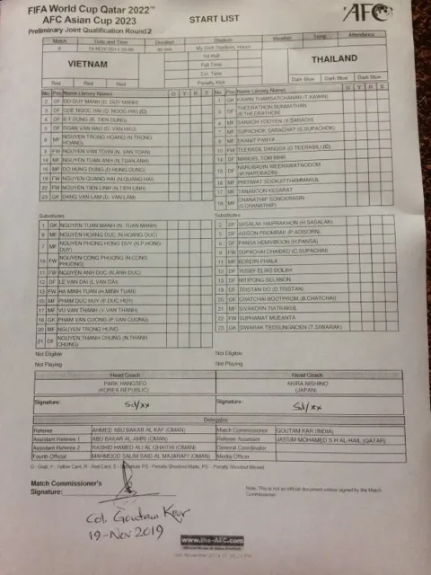 Bàn thắng không được công nhận!!!!!!!! Phút 32, từ quả đá phạt góc, Tiến Dũng bật cao đánh đầu vào lưới Thái Lan nhưng bàn thắng không được công nhận vì trọng tài cho rằng Văn Hậu đã phạm lỗi tranh chấp với thủ môn Kawin.