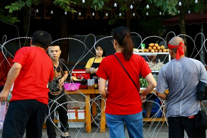 Các CĐV mua đồ ăn bên trong hàng rào.