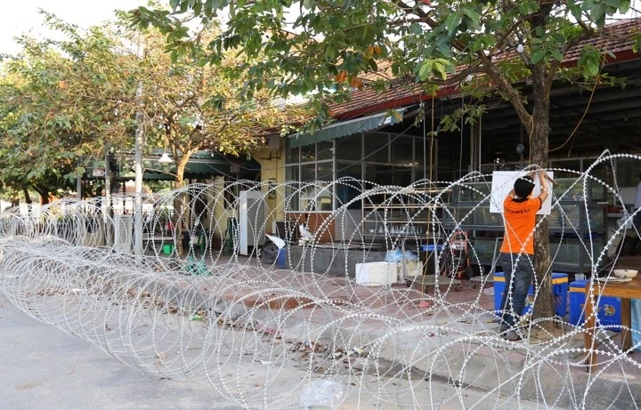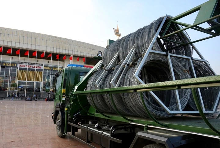 Hàng rào bảo vệ quanh sân.