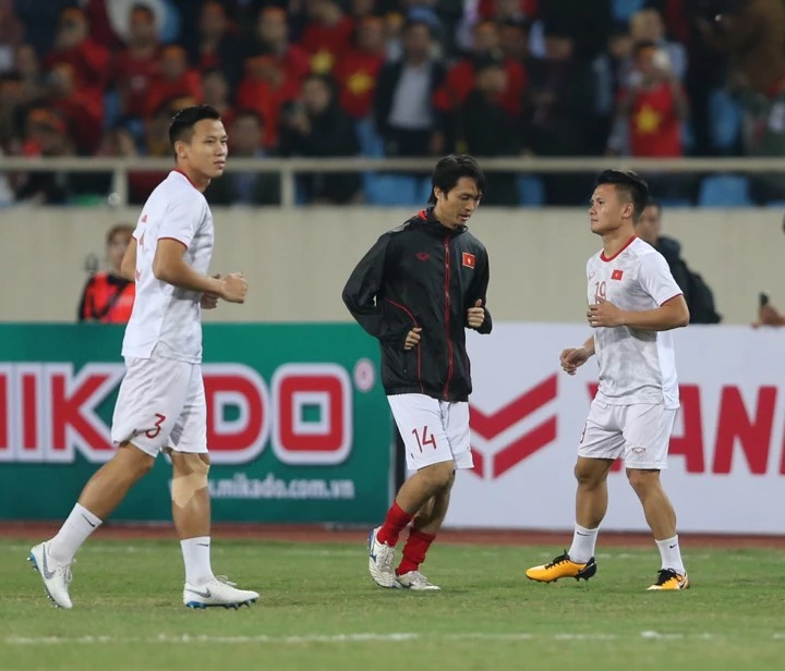 Đội hình xuất phát của tuyển Việt Nam trong trận đấu với Thái Lan không có sự thay đổi nào so với trận thắng trước đó 1-0 trước UAE. Trong khung thành vẫn là thủ môn Văn Lâm, bộ ba trung vệ gồm Duy Mạnh, Ngọc Hải và Tiến Dũng. Cặp tiền vệ trung tâm Hùng Dũng và Tuấn Anh cùng với Văn Toàn, Quang Hải sẽ hỗ trợ cho tiền đạo cắm Tiến Linh.