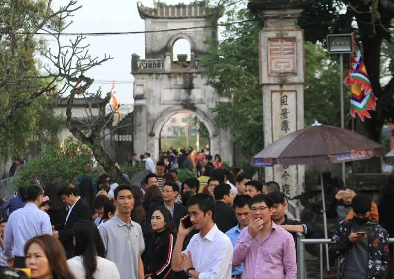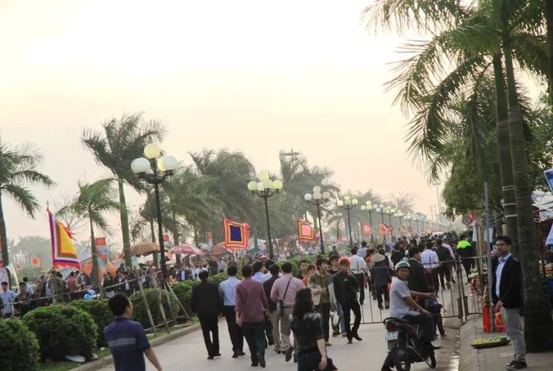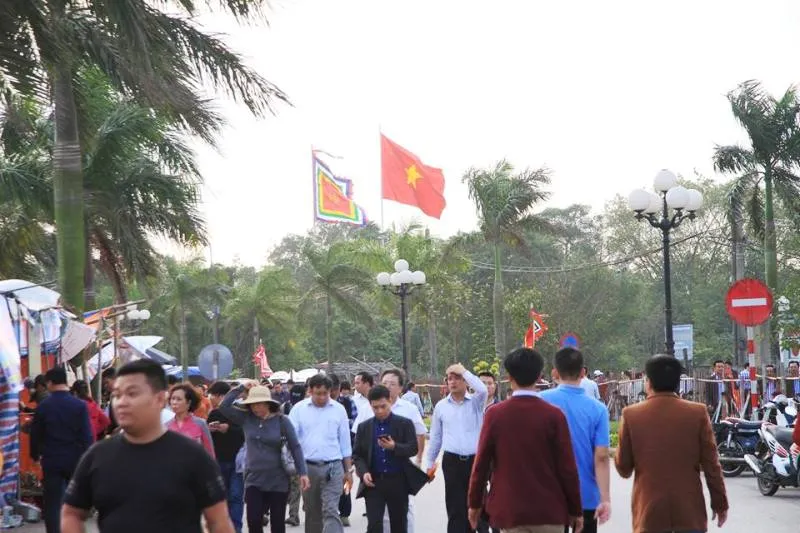 Dòng người đổ về đông nên phía ban tổ chức đã huy động nhiều vòng chốt chặn, hướng dẫn giao thông để lễ hội diễn ra được an toàn.