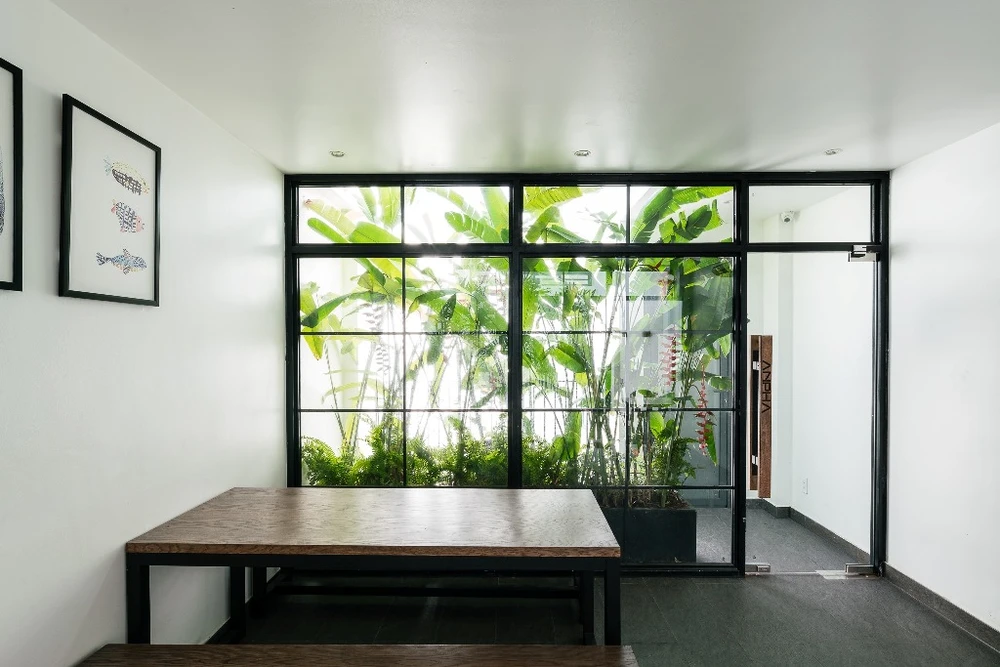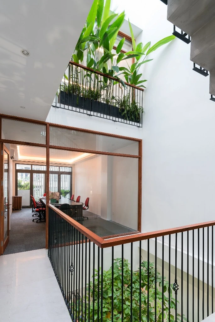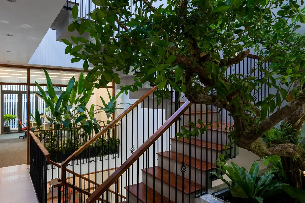 Cây xanh được thiết kế giữa văn phòng tạo khoảng không gian thoáng mát.