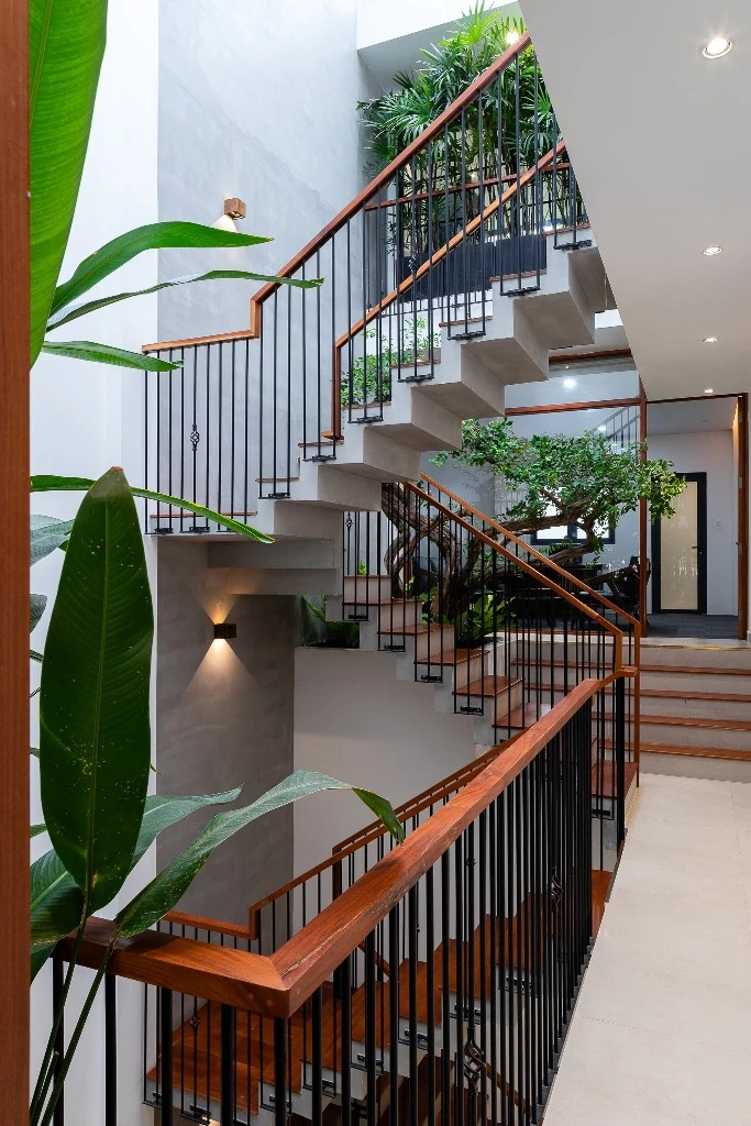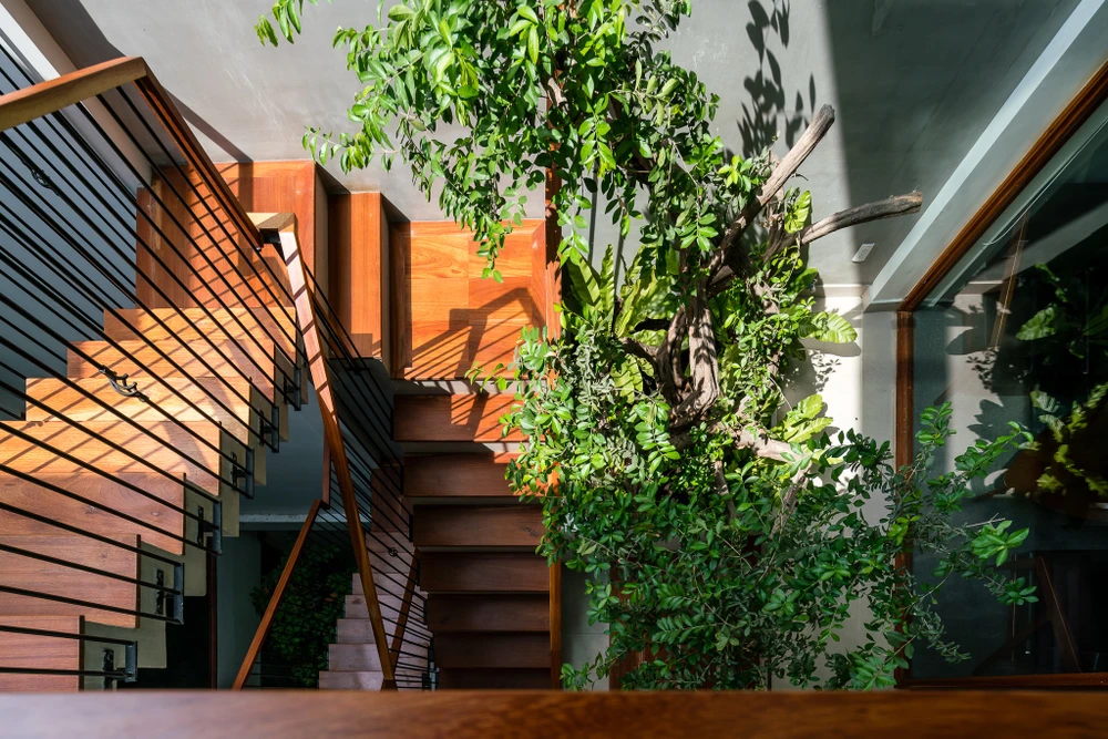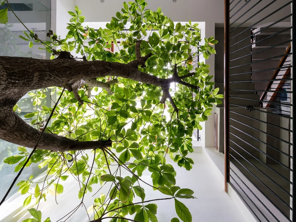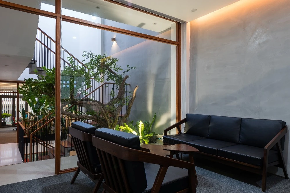Giếng trời vừa lấy được ánh sáng tự nhiên vừa tận dụng được nguồn gió trời mát rượi.