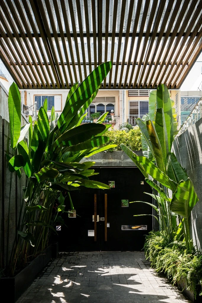 Lối đi vào là dàn cây xanh trước ngõ.