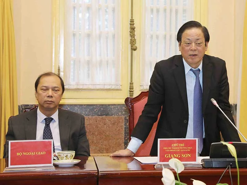 Phó Chủ nhiệm thường trực Văn phòng Chủ tịch nước Giang Sơn chủ trì họp báo. Ảnh: TTXVN