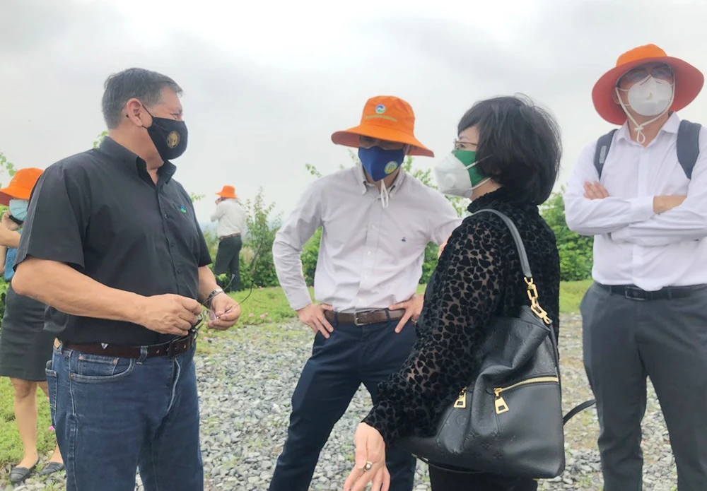 Ông Romulo - Chuyên gia vận hành khu chôn lấp (áo đen) đang trao đổi với Đoàn thẩm định về quy trình xử lý rác